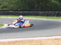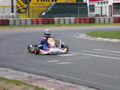 Beim zweiten Rennen bin ich dann wieder von der 4. Position aus gestartet, weil die ersten beiden Rennen nach Qualifikationsplätzen gestartet wurden. Das Dritte Rennen wurde dann nach der Summe der ersten beiden Rennen gestartet. Ich startete somit wieder von Außen. Bei diesem Start tat sich Innen nach dem Start eine Lücke auf, in welche ich auch sofort hinein fuhr. Allerdings gab es im Feld hinter mir Rangeleien. Durch diese verlor eine anderer Fahrer hinter mir die Kontrolle über sein Kart, rutschte weg und schoss sich und mich von der Strecke ab. Nun war ich vorletzter und musste von der 17. Position aus das Feld von Hinten aufholen. Jedoch baute der Grip während des Rennens stark ab. Ich dachte zuerst, dass der Gripabbau an zu hohem Luftdruck läge. Aber wir stellten fest, dass sich das Chassis wieder zurück gebogen, als krumm gebogen, hatte. Mit erschwerten Gripverhältnissen schaffte ich es dann noch von 17 bis auf 7 vorzufahren.