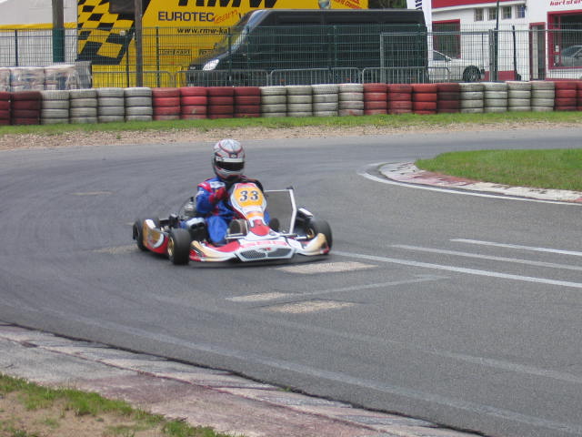 Die Strecke gut kennen zulernen war kein Problem und es dauerte auch nicht lange bis ich die richtige Linie auf der Strecke gefunden hatten. Allerdings mussten wir noch alte Trainingsreifen aufbrauchen und konnten deswegen keine 100 prozentigen Topzeiten fahren, da es mit alten Reifen schwierig ist eine gute Ballance und somit ein gutes Setup zu finden. Natürlich versuchten wir trotzdem alles was möglich war aus mir und dem Kart herauszuholen. Dies gelang uns auch größtenteils.